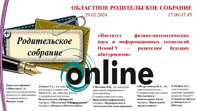 Уважаемые родители! Приглашаем Вас на региональное родительское собрание в онлайн формате, которое состоится 29.02.2024 в 17-00. Собрание проводится в ВК-мессенджере: https://sferum.ru/?call_link=uJav7nyHzO4uLUbAzlAoz1UhzSYwc96cw1oPqsQ6N7M.