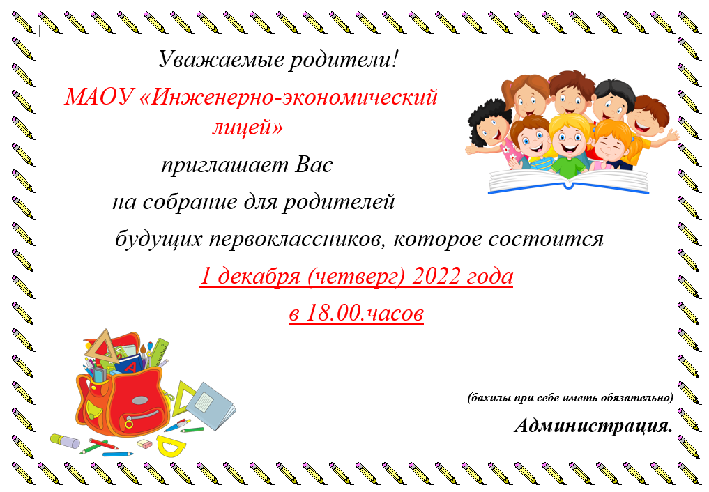 1 декабря 2022 года в 18.00 в актовом зале состоится родительское собрание для  родителей будущих первоклассников. Ждём у нас в лицее.